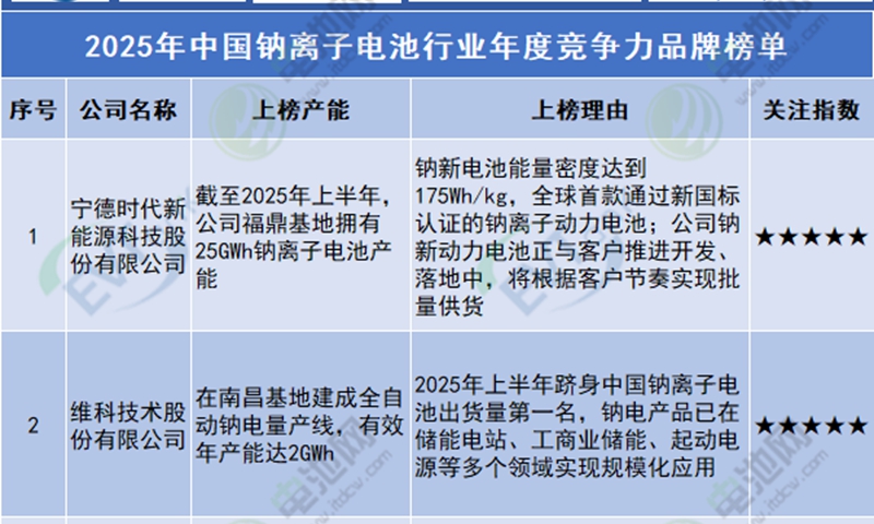 实力认证 | 维科技术荣膺钠电竞争力品牌榜单No.2,仅次于宁德时代